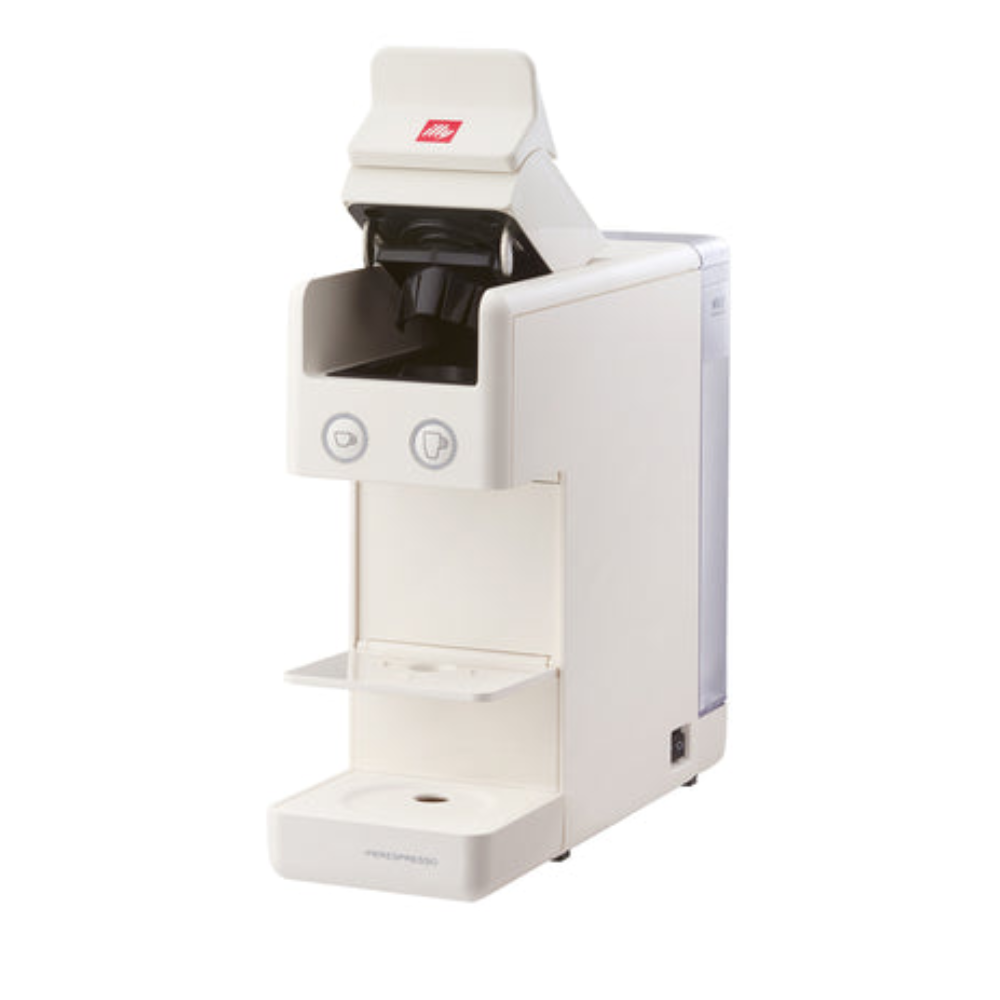 Illy Y3.3 espresso aparat u bijeloj boji donosi savršen spoj elegancije, kompaktnog dizajna i vrhunskih performansi. Radi na kapsule, što omogućava brzu, čistu i jednostavnu pripremu savršenog espressa u svakom trenutku. Sa snagom od 1250 W i pumpom od 19 bara, ovaj aparat obezbjeđuje profesionalnu ekstrakciju i punu aromu illy kafe.