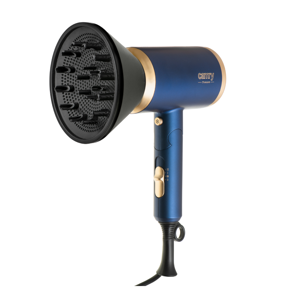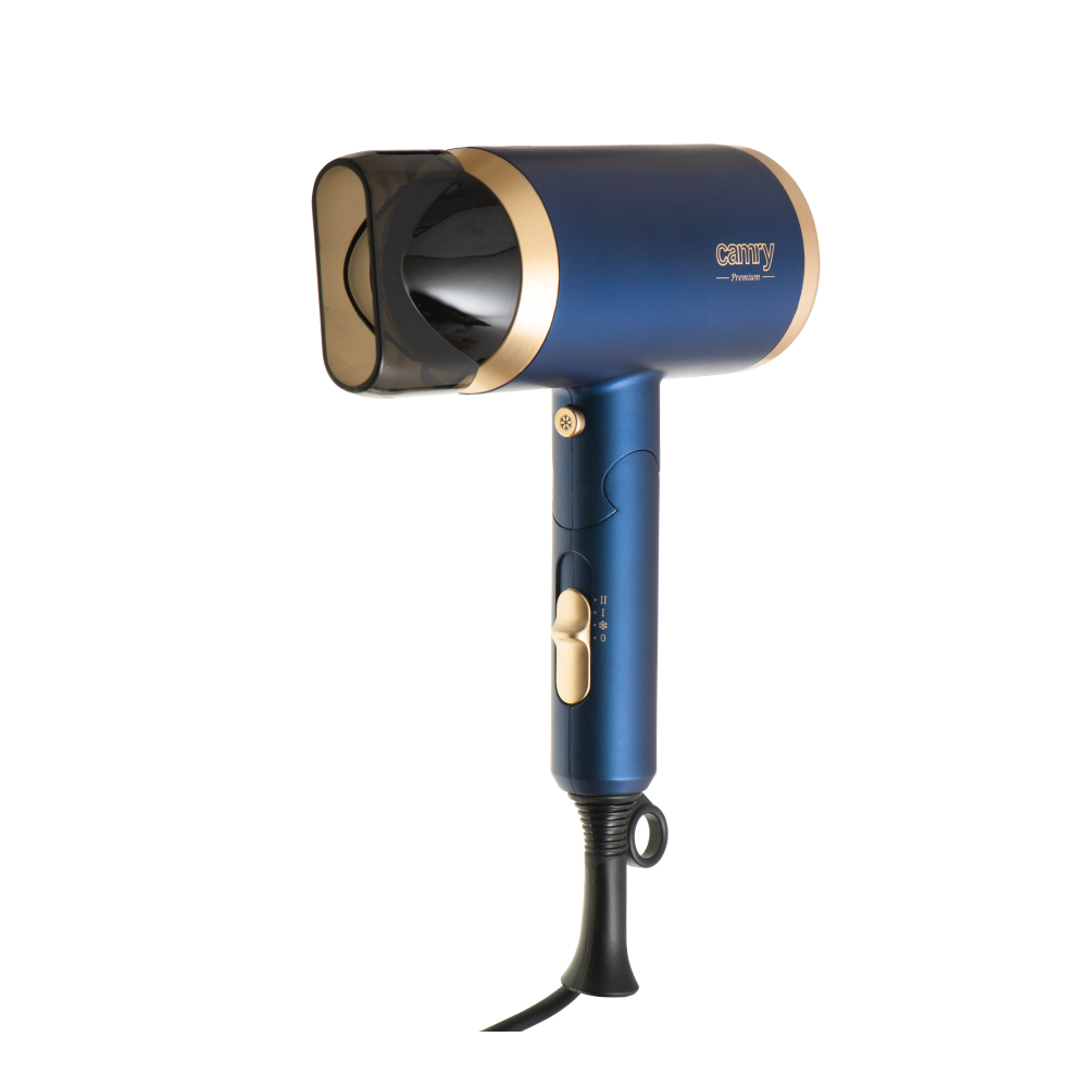 Fen je opremljen preklopnom drškom, što ga čini izuzetno pogodnim za putovanja i jednostavno odlaganje, jer zauzima minimalno prostora. Elegantna kombinacija plave i zlatne boje daje uređaju premium izgled.