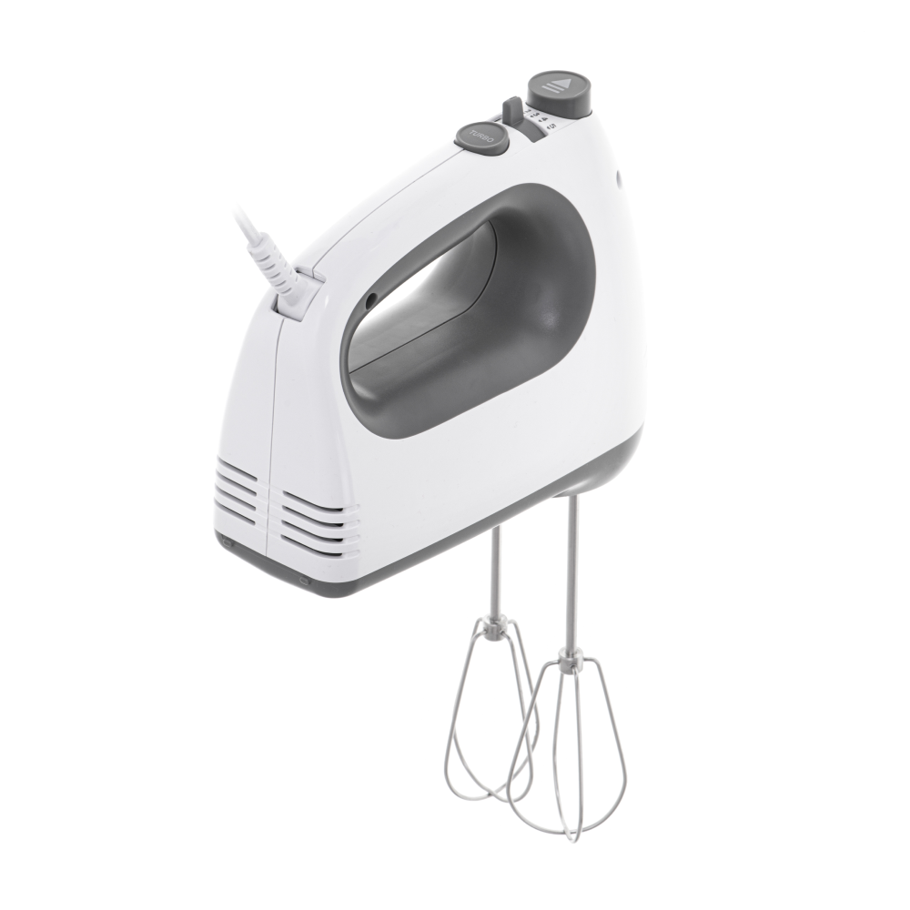 Opremljen je sa 5 različitih brzina, što omogućava potpunu kontrolu nad procesom miješanja, dok TURBO dugme pruža dodatni nalet snage za najzahtjevnije trenutke u pripremi hrane. U kompletu dolaze 2 metlice za miješanje i 2 kukice za tijesto, izrađene od visokokvalitetnog nehrđajućeg čelika, što garantuje dug vijek trajanja i sigurnu upotrebu.