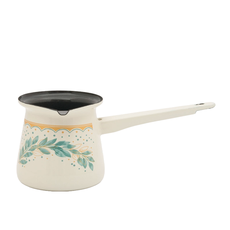 Džezva prečnika 9 cm i zapremine 0,4 litra idealna je za pripremu do 4 šoljice domaće kafe. Izrađena je od emajliranog čeličnog lima, koji omogućava ravnomjerno zagrijavanje, dugotrajnu upotrebu i očuvanje prirodnog okusa napitaka.