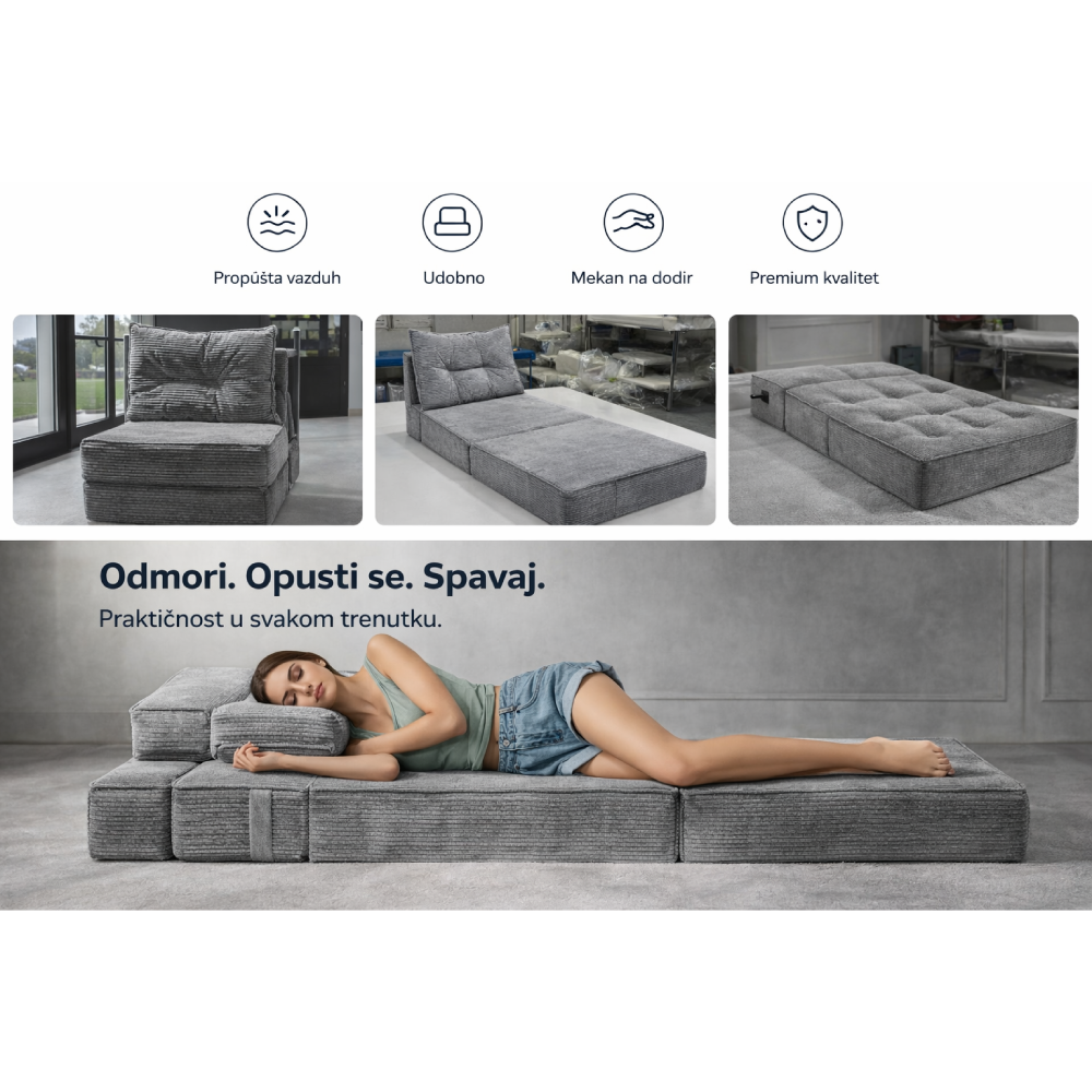 - Višenamjenska upotreba – idealna za dnevni boravak, dječiju sobu ili kao pomoćni ležaj