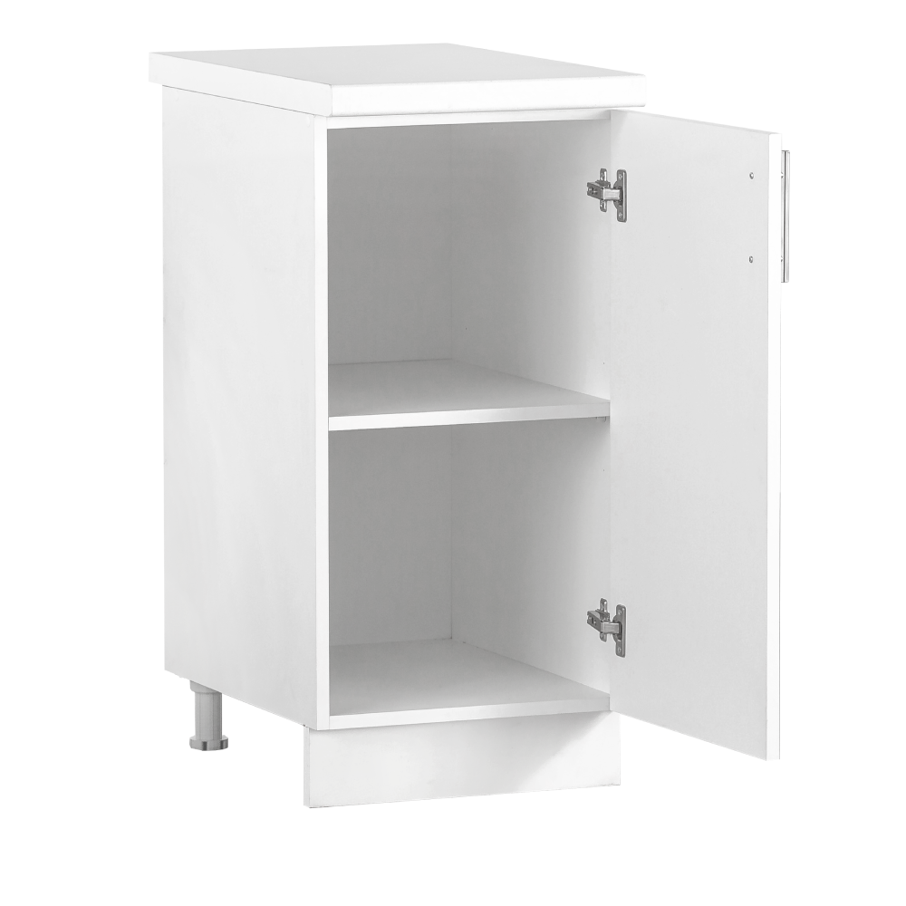 Donji kuhinjski element širine 40 cm u bijeloj boji idealan je za manje kuhinjske prostore ili kao dopuna većem kuhinjskom sastavu. Izrađen od kvalitetnih pločastih materijala (P/V), ovaj element nudi stabilnost, dugotrajnost i jednostavno održavanje.
