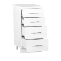 Izrađen od kvalitetnih pločastih materijala, ladičar nudi stabilnost, dugotrajnost i jednostavno održavanje. Bijela boja doprinosi svježem i neutralnom izgledu, lako se uklapa u različite stilove uređenja, te se može kombinovati s drugim kuhinjskim elementima.