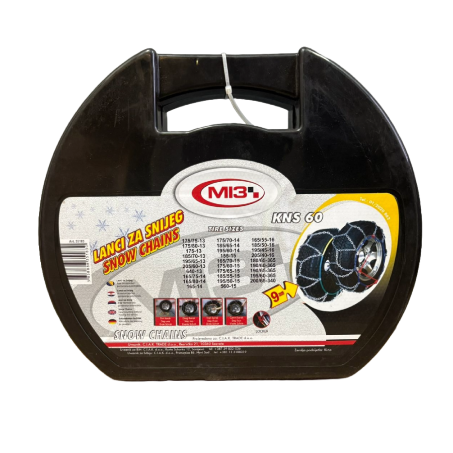Lanci za snijeg KN60 su praktičan dodatak za sigurnu vožnju u zimskim uslovima. Dizajnirani da poboljšaju prianjanje na snijegu i ledu, ovi lanci su idealni za vozače koji žele dodatnu sigurnost tokom zimskih mjeseci.