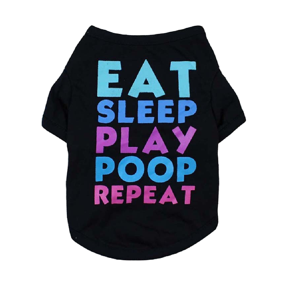 Majica dolazi s atraktivnim i živopisnim natpisom “EAT SLEEP PLAY POOP REPEAT”, koji donosi dozu humora i šarma, a istovremeno majicu čini odličnom za fotografije i objave na društvenim mrežama.