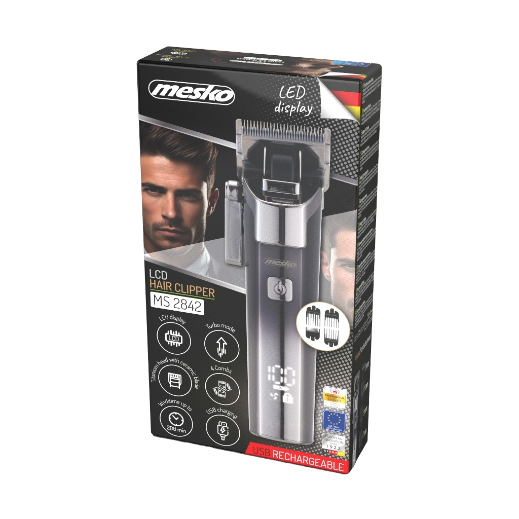 Trimer za šišanje MESKO MS 2842 IPX6 kombinira moderni dizajn, izdržljive materijale i visok nivo performansi. Zahvaljujući vodootpornosti IPX6, lako se čisti i otporan je na prskanje vode, što omogućava sigurnu i higijensku upotrebu.