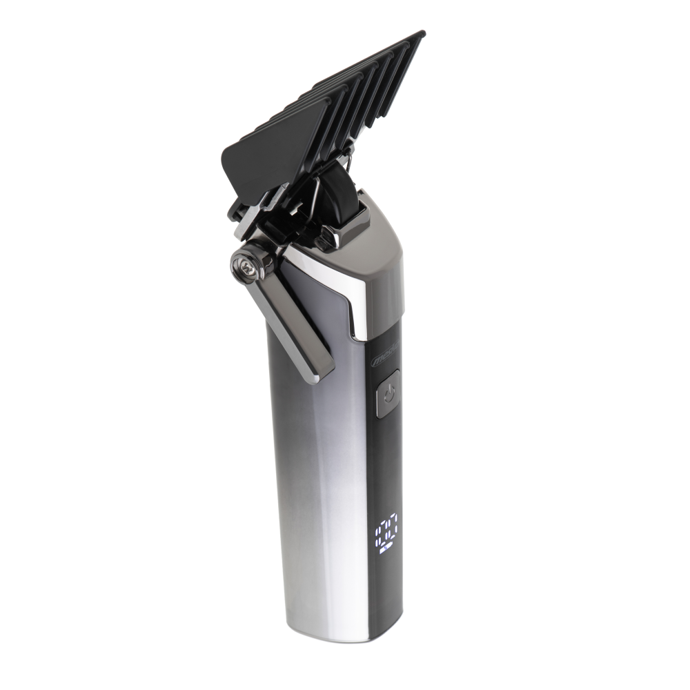 Opremljen je oštrim i izdržljivim čeličnim noževima koji pružaju precizno šišanje bez povlačenja dlaka. LED ekran prikazuje preostalo vrijeme rada, stanje baterije i aktivne funkcije, što korisniku daje potpunu kontrolu nad uređajem.