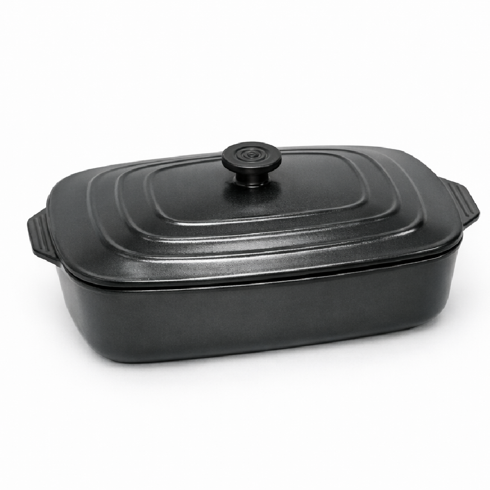 Njegov moderan dizajn, duboka forma i praktične ručke omogućavaju sigurno rukovanje, dok je glatka površina jednostavna za čišćenje i održavanje. Ovo je idealan izbor za domaćinstva koja žele funkcionalan i dugotrajan pekač.
