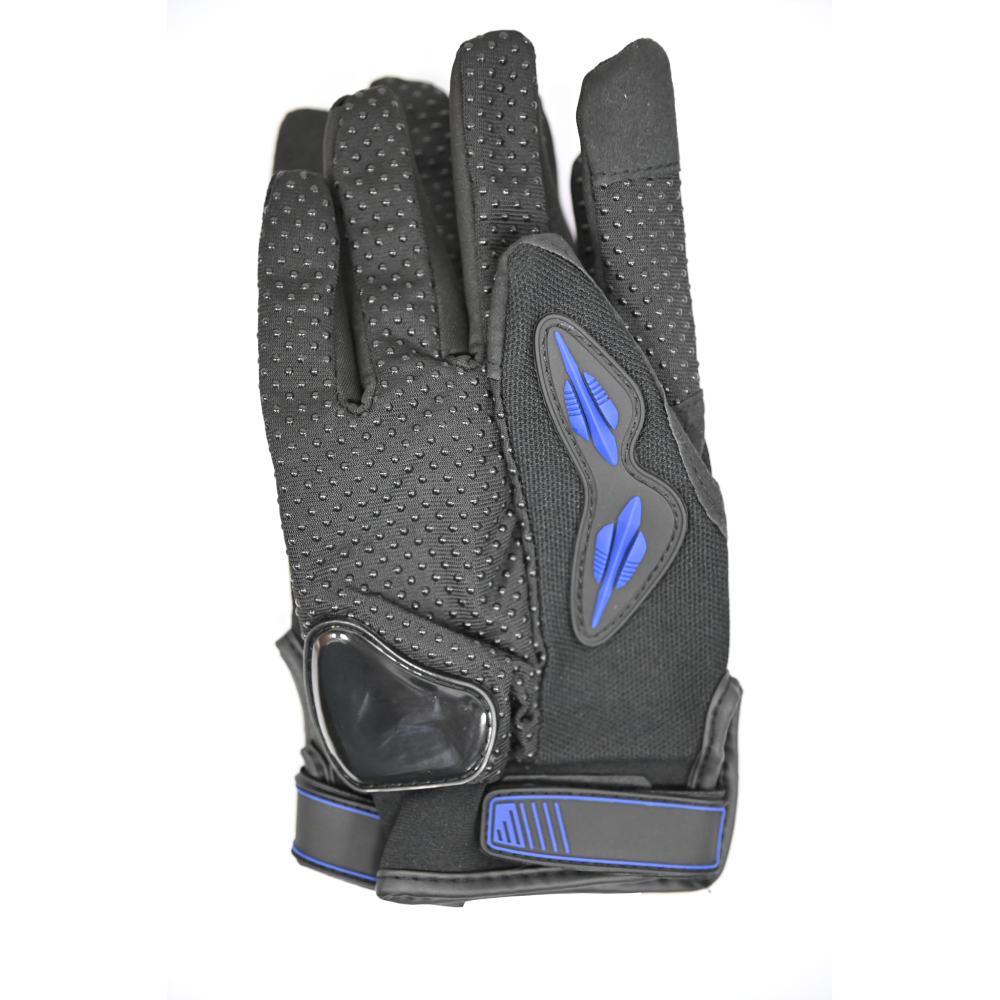 Rukavice su opremljene čičak trakama za jednostavno podešavanje i sigurno prianjanje. Lagane su, fleksibilne i pogodne za vožnju motocikla, skutera ili bicikla. Moderni dizajn sa plavim detaljima daje atraktivan izgled uz maksimalnu funkcionalnost.