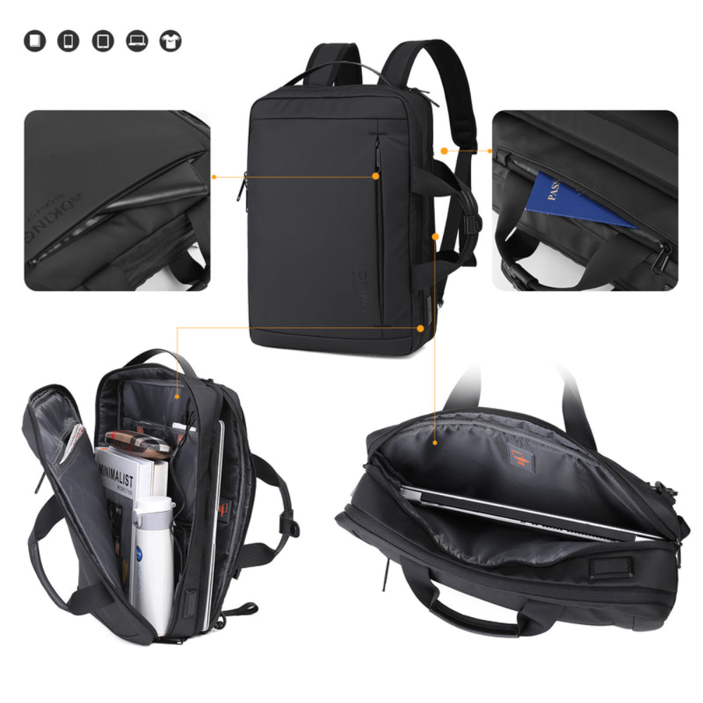 Poseban pretinac omogućava sigurno odlaganje laptopa do 15.6 inča, dok lagana konstrukcija težine 0.81 kg pruža udobnost pri dužem nošenju. Ruksak je izrađen u kombinaciji elegantne crne i sive boje, što mu daje moderan i profesionalan izgled.