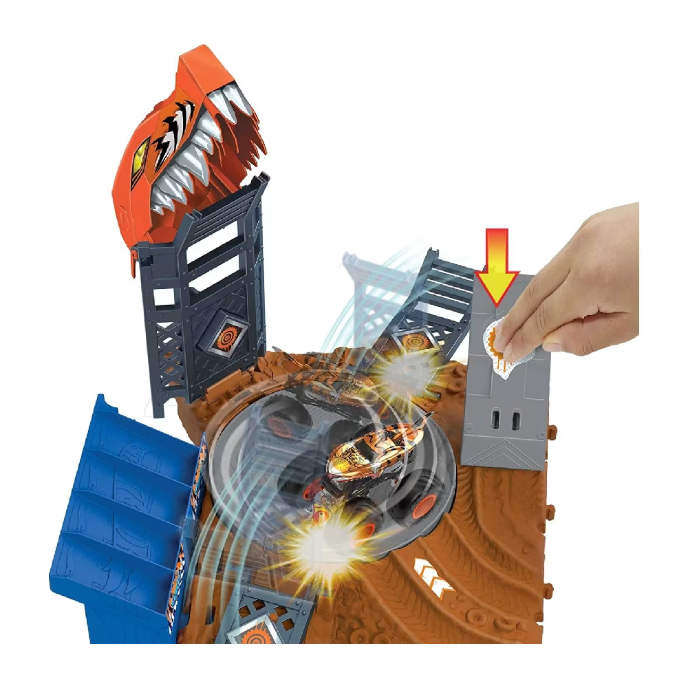 Unesi pravi Monster Trucks haos u igru sa Hot Wheels Monster Trucks Arena Smashers – Tiger Shark setom, koji donosi potpuno novu dimenziju sudara, pucanja i akcije. Ovaj dinamični set omogućava djeci da pokrenu Tiger Shark truck poput praćke i pokušaju pogoditi mete unutar arene – ali oprez! Pogodiš li pogrešan cilj u pogrešnom trenutku, Tiger Shark završava direktno u ogromnim čeljustima suparničkog morskog psa.