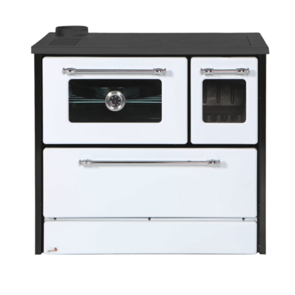 Max 701 G je funkcionalan i elegantan štednjak na čvrsto gorivo, idealan za grijanje i pripremu hrane. Sa snagom od 9 kW i efikasnošću od 80%, pruža pouzdanu toplinu za prostorije do 160 m³. Prostrana rerna i lijevi dimovodni priključak čine ga praktičnim za svakodnevnu upotrebu, dok kombinacija crne i bijele boje doprinosi modernom izgledu.