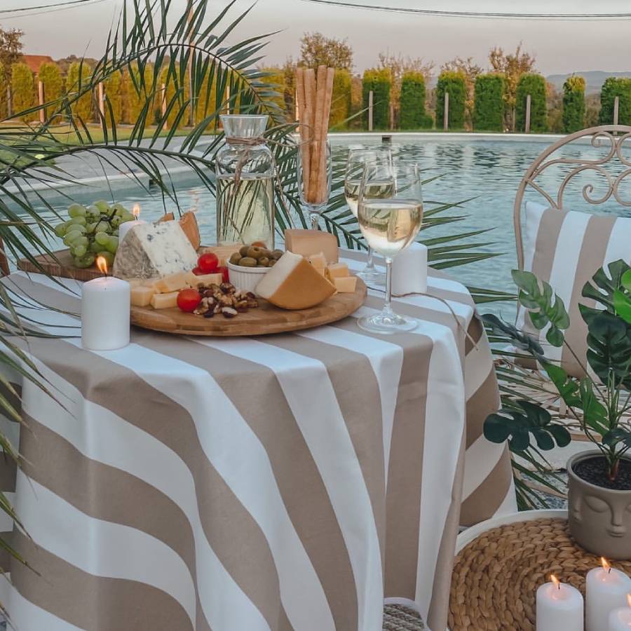 Ovaj stolnjak kombinuje praktičnost i eleganciju, savršen je za svakodnevnu upotrebu, ali i za posebne prilike. Njegova površina sprječava upijanje tečnosti, pa će vaš sto uvijek izgledati uredno i svježe.
