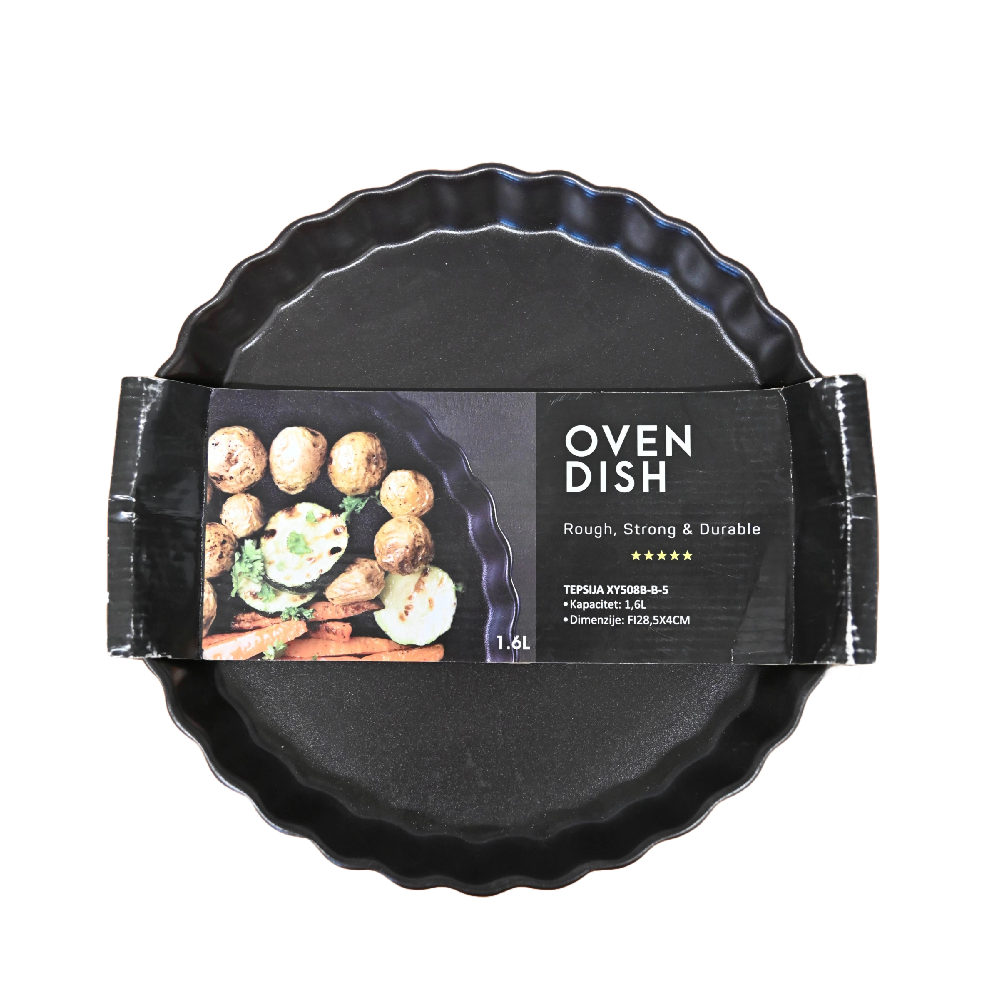 Tepsija fi 28,5 cm u elegantnoj crnoj boji savršen je dodatak svakoj kuhinji. Zahvaljujući svom praktičnom prečniku, pogodna je za pripremu raznih jela – od pečenja, lazanja, pita, do kolača i povrća. Izrađena je od kvalitetnog materijala otpornog na visoke temperature, što omogućava ravnomjerno pečenje i dugotrajnu upotrebu. Crna boja daje moderan izgled i lako se uklapa u svaki kuhinjski ambijent. Površina tepsije je jednostavna za čišćenje, a u zavisnosti od modela, može biti pogodna za mašinu za suđe i različite vrste rerni. Idealna je za domaćinstva, ali i profesionalnu upotrebu u ugostiteljstvu.